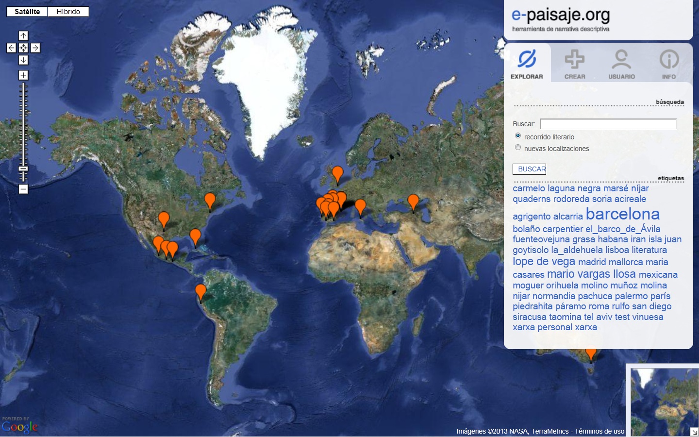 El principal objetivo del proyecto e-paisaje.org es favorecer la accesibilidad a una herramienta de construcción —de construcción literaria— para todos aquellos narradores que trabajen o utilicen el recurso del paisaje. Este objetivo se alcanza mediante la elaboración de una base de datos en la que se están recopilando y recreando rutas literarias y localizaciones geográficas aparecidas en la extensa narrativa en castellano. La herramienta se abre al criterio social, ya que tanto lectores como autores pueden incorporar sus rutas e itinerarios tanto de creaciones nuevas o en proceso como extractadas desde obras ya impresas de autores conocidos.