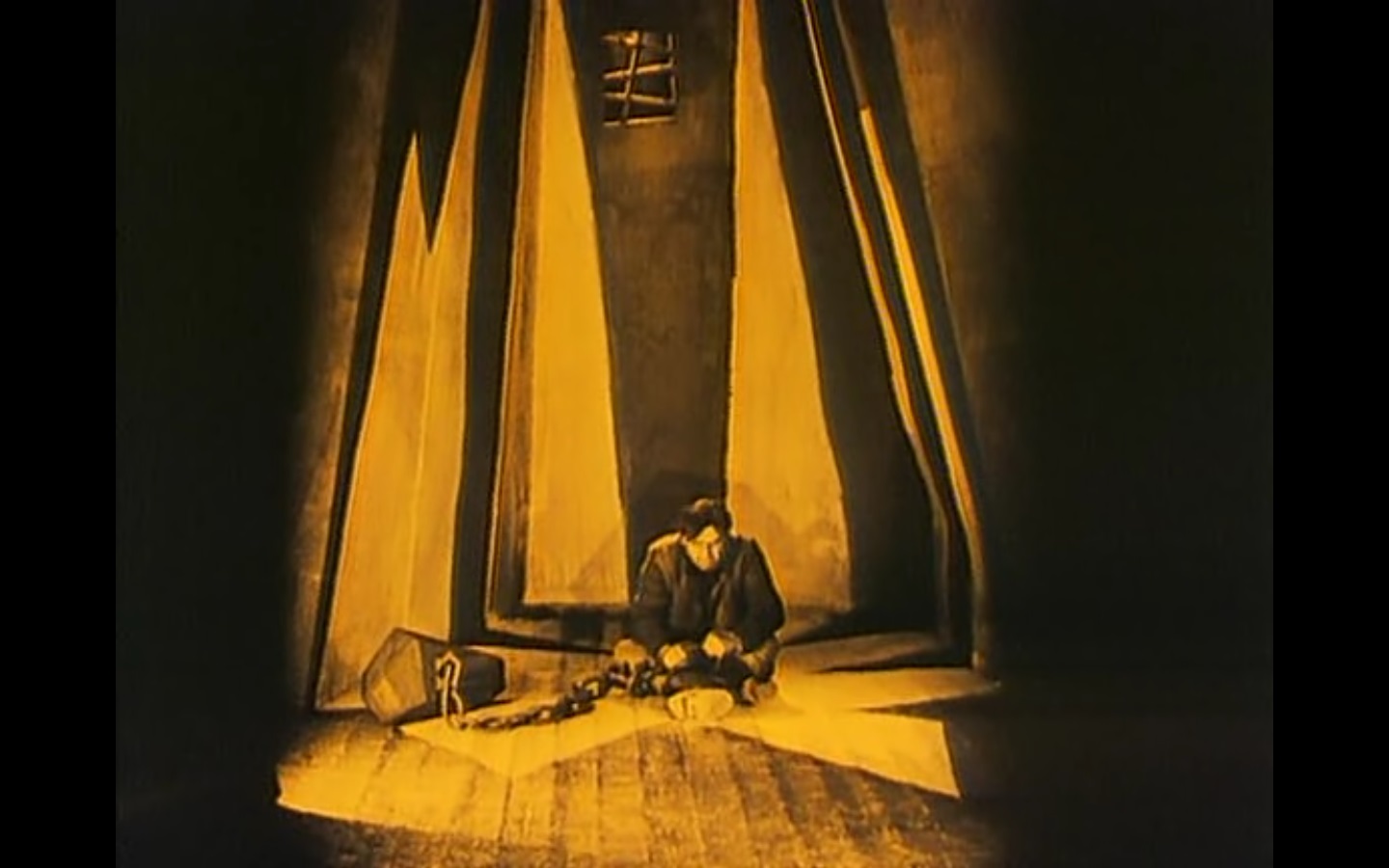 Un ejemplo del efecto que buscaba generar el expresionismo en el espectador es la construcción de las dos celdas que salen representadas en la película (la de la prisión y la del manicomio). No tienen forma cúbica, como cualquier habitación normal, sino que las paredes están inclinadas, uniéndose en punta hacia arriba, cerca de un estilo piramidal. Así, se le da expresión a los calabozos, como un lugar que oprime y que presiona a quién lo habita. En ambas celdas, en el extremo hay una ventana que resulta inalcanzable por su ubicación tan alta, con esto se quiere transmitir que la salida, la conexión con el mundo exterior, no es algo a lo que se pueda aspirar.